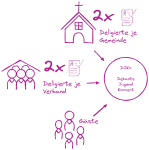 Die Aufgabe des Dekanatsjugendkonventes (DJKo) ist es, Jugendliche aus den verschiedenen Gemeinden zu vernetzen und einen Austausch an kreativen Ideen zu bringen. In Workshops werden zu einem zuvor gewählten Thema neue Arbeitsweisen kennengelernt und auch Aktionen vorbereitet.